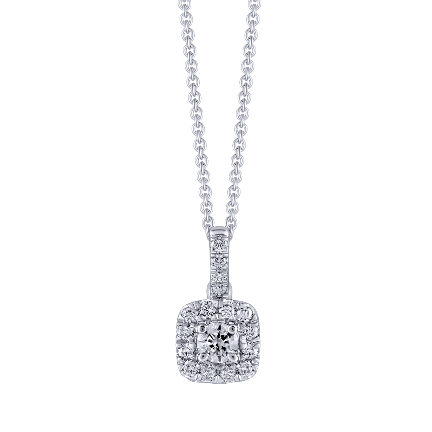 Smukt kvadratisk vedhæng i 14 karat hvidguld med masser af glitrende brillianter fra Støvring Design
