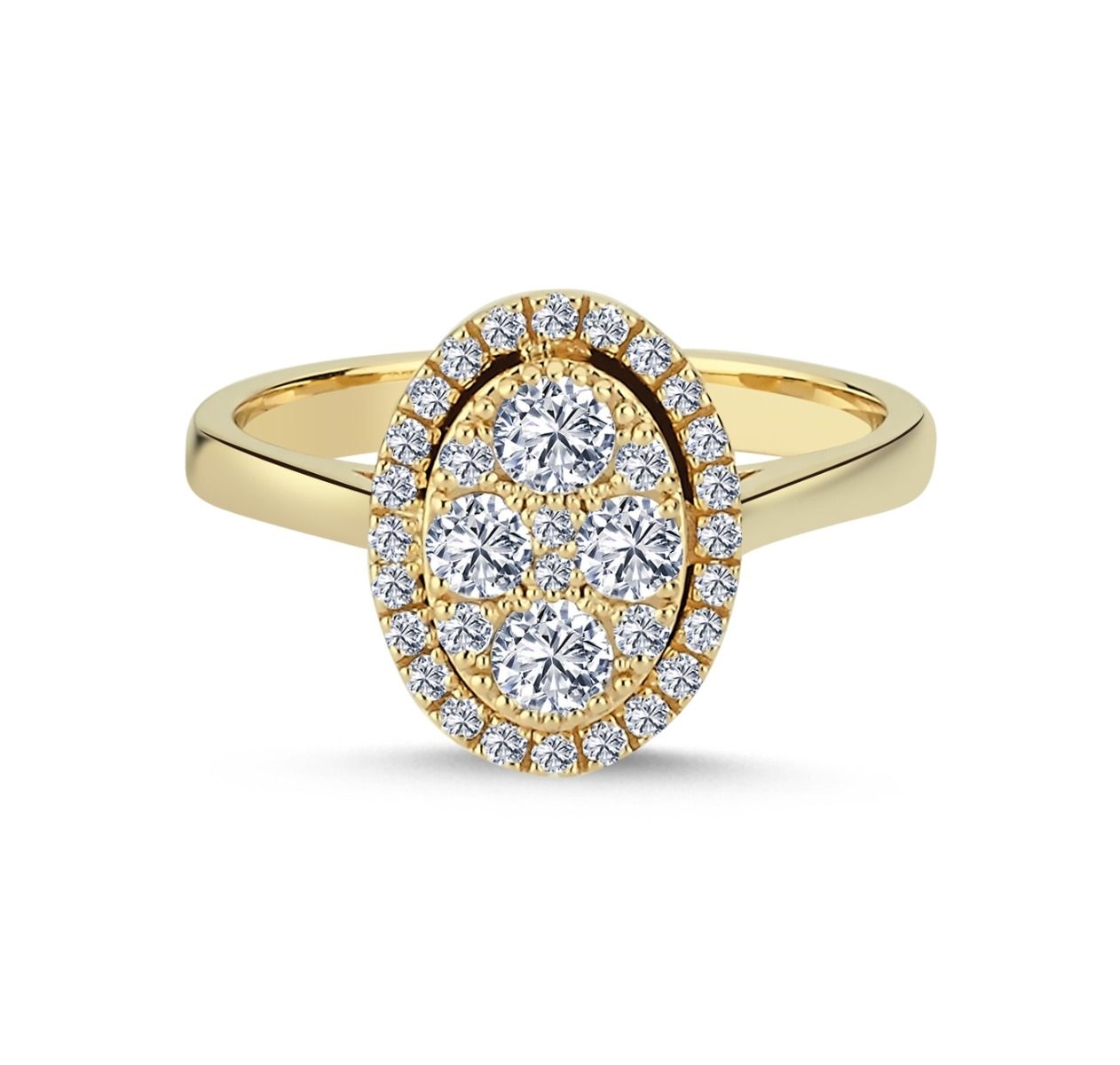 Posh ringen er oval i 14 karat guld med ialt 0,64 ct. glitrende brillianter i kvaliteten Wesselton Si.