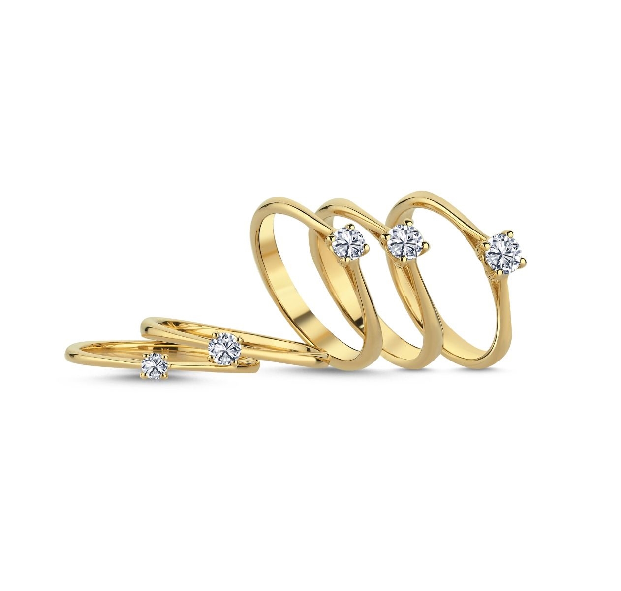 The One ringen, en solitaire ring med en enkelt brillant i 14 karat klassisk guld. Diamanten er en 0,33 ct i brilliant slib i kvaliteten Wesselton Si.