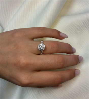 14 karat hvidgulds diamant ring med ialt 1,32 ct lab grown diamanter TW/VS - 1 ct rund center sten med ialt 0,32 ct diamanter rundt om center stenen og på ringskinne.