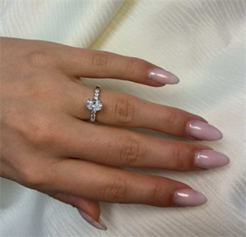 14 karat hvidgulds diamant ring med ialt 1,2 ct lab grown diamanter TW/VS - 1 ct oval center sten og tre diamanter ned af begge sider på ringskinnen alle fattet i classic 4 grab fatning.