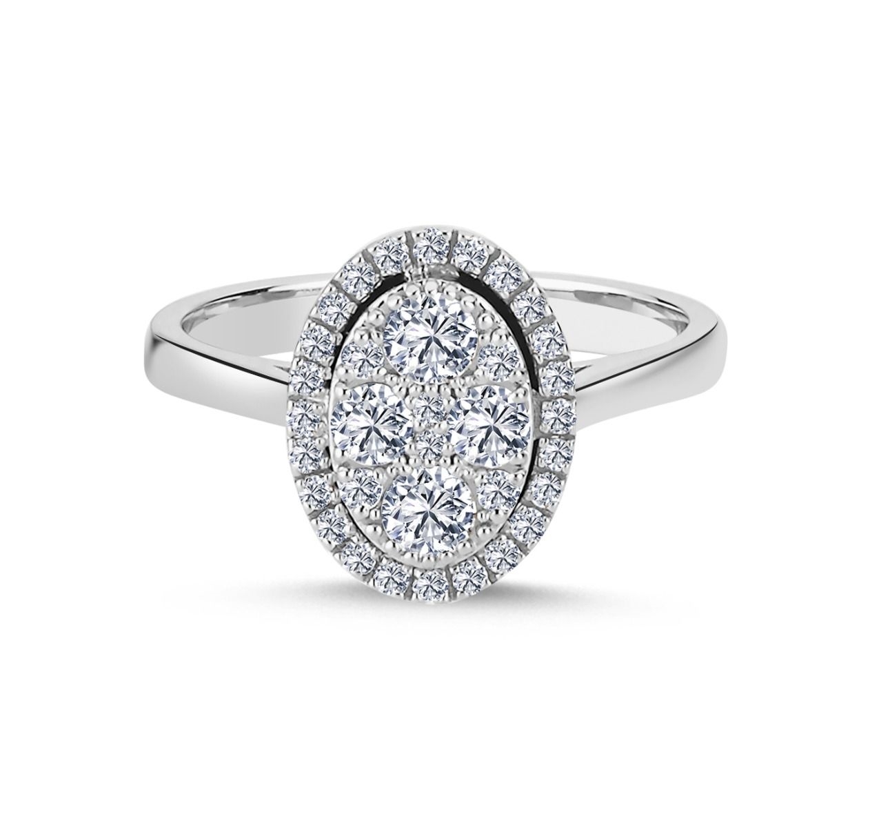 Posh smykkesættet med ovalt vedhæng, ovale ørestikkere og oval ring er i 14 karat hvidguld med Wesselton SI brillianter smukt fattet med detaljeret fatninger og 42 cm kæde til vedhænget.
