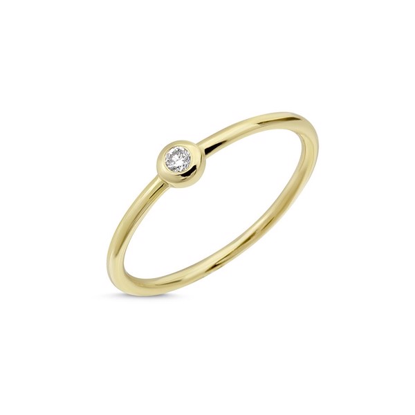 Zoe ringen er i 14 karat guld med en 0,03 ct diamant i kvaliteten Wesselton SI fattet i en rund fantning.