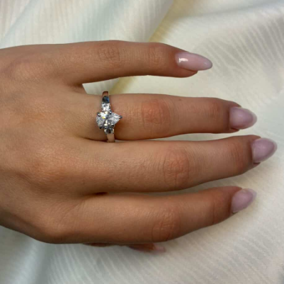 14 karat diamant ring med ialt 1,33 ct lab grown diamanter TW/VS - 1 ct dråbe formet center sten og 2 sten på ringskinne