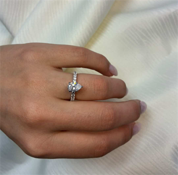 14 karat diamant ring med ialt 1,4 ct lab grown diamanter TW/VS - 1 ct dråbe formet center sten og 10 sten på ringskinne