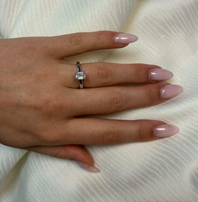 14 karat guld diamant ring med ialt 1,0 ct lab grown diamanter TW/VS - 1 ct firkantet center sten og glat ringskinne.