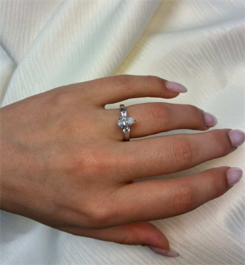 14 karat diamant ring med ialt 1,33 ct lab grown diamanter TW/VS - 1 ct dråbe formet center sten og to diamanter på ringskinnen alle fattet i classic 4 grab fatning.