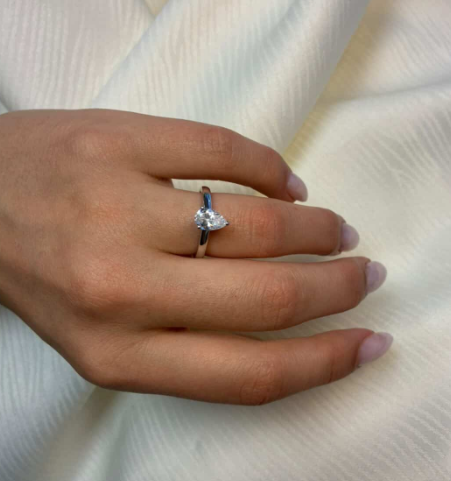 14 karat diamant ring med ialt 1,0 ct lab grown diamanter TW/VS - 1 ct dråbe formet center sten fattet i en classic 4 grab fatning - og helt glat ringskinne.
