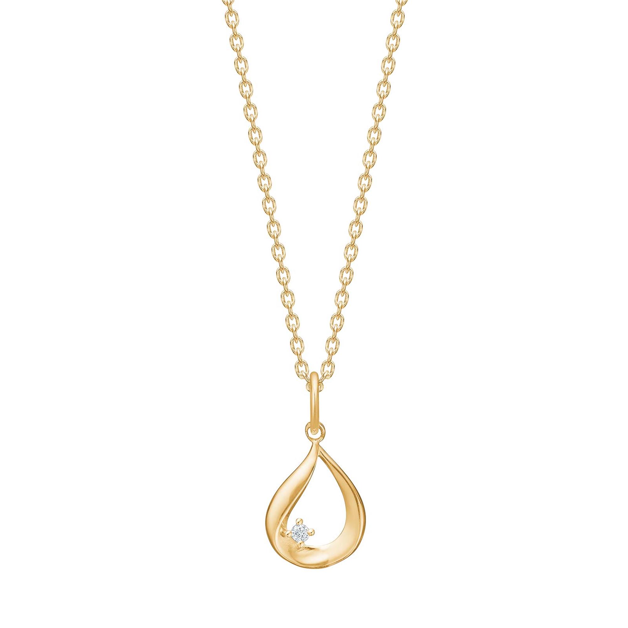 14kt. guld vedhæng m. 0,015ct W/SI inkl. forg. kæde, fra Siersbøl