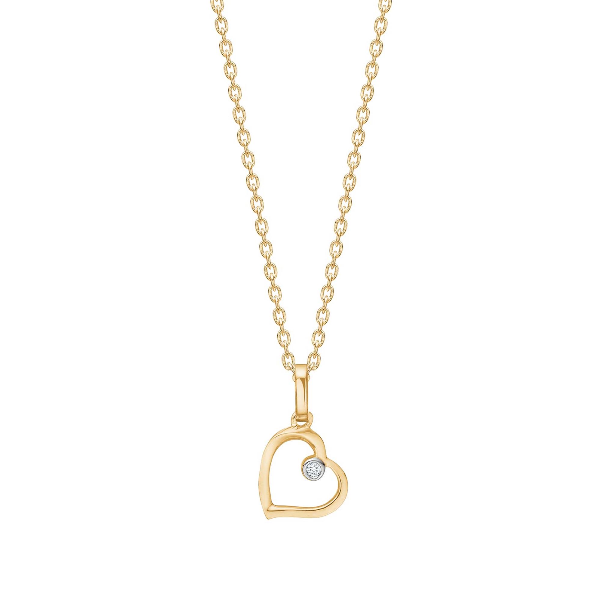 14kt. guldhjerte m/dia. 0,008ct W/SI inkl. forg. kæde, fra Siersbøl