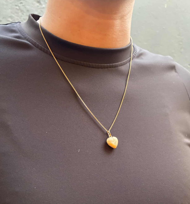 8 kt hjertevedhæng med to overflader - skøjte matteret på den ene side og helt blank på den anden