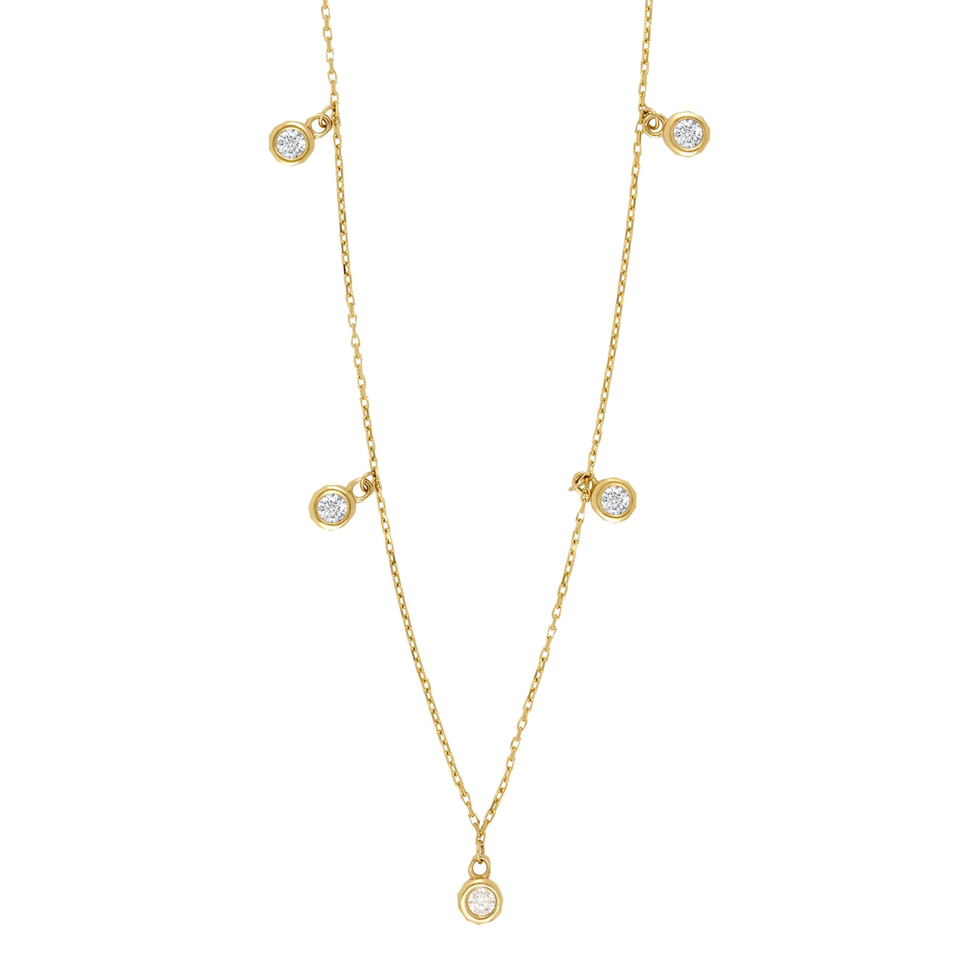 8kt. guldhalskæde m/5 cz i rørfatning, fra Siersbøl
