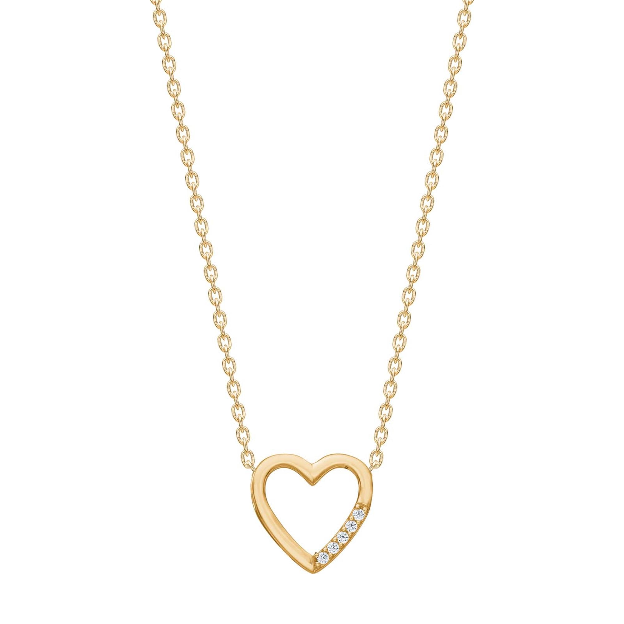 8kt. Guldvedhæng hjerte m.cz inkl. forg. kæde, fra Siersbøl