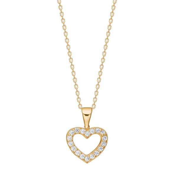 8kt. guldvedhæng hjerte m/cz inkl. forg. kæde, fra Siersbøl