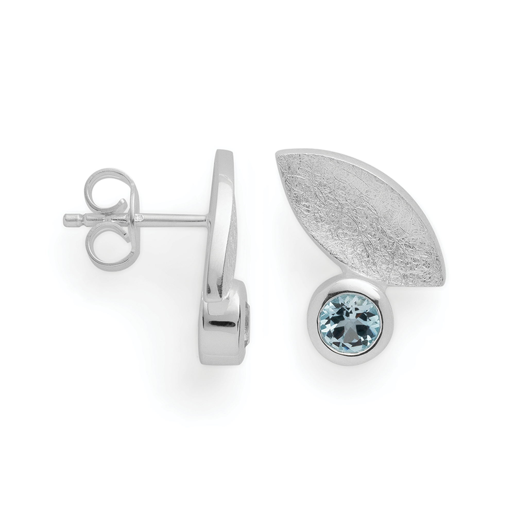 925/- øreringe, børstet, blå topaz 0,64ct, fra Bastian Inverun