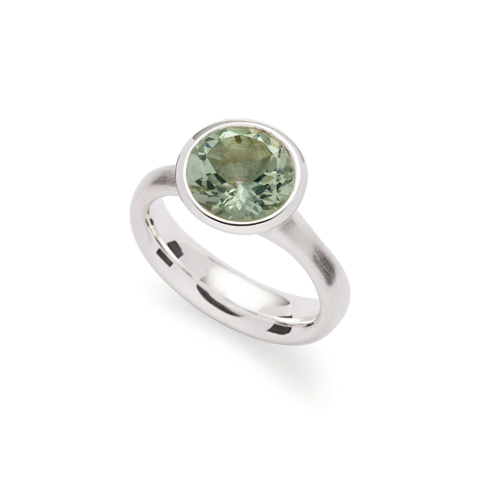 925/- ring,rh.-pl., mat/pol.,amethyst grøn 3,1ct, fra Bastian Inverun