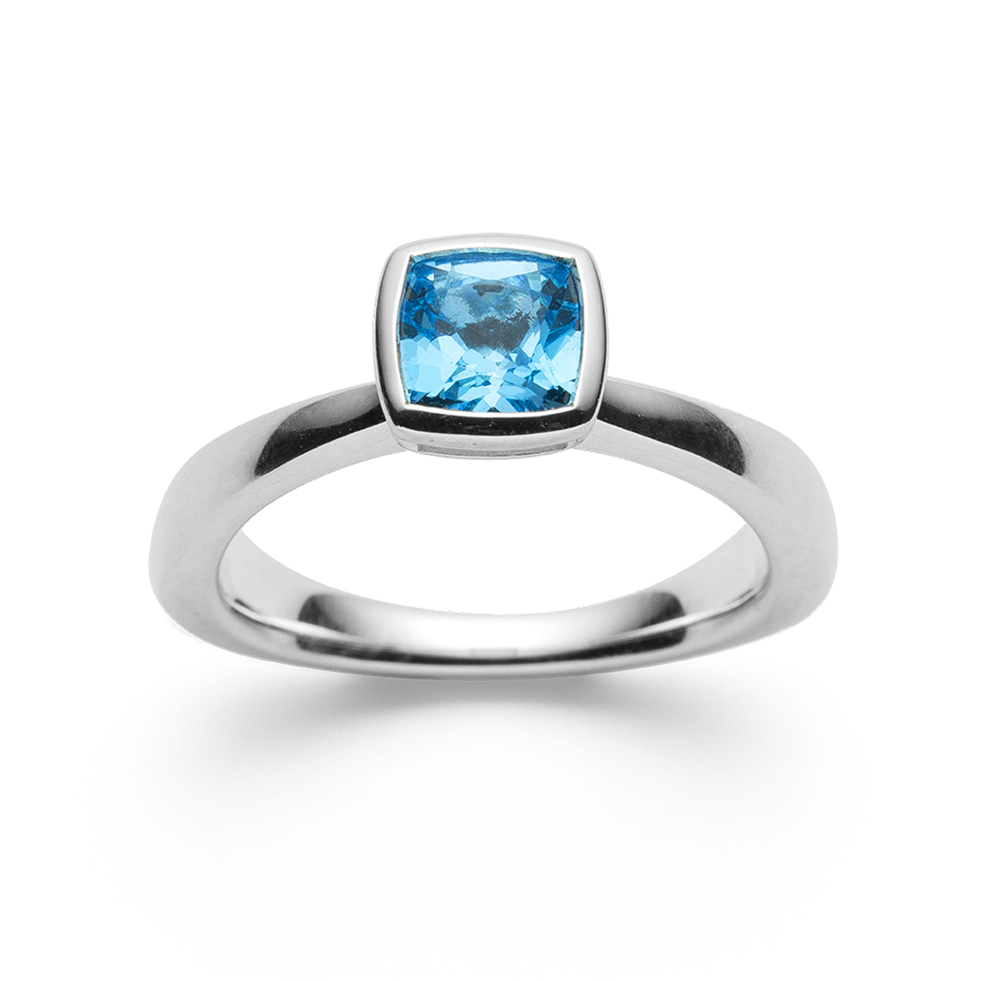 925/- Ringblank, blå topas 1,15ct, fra Bastian Inverun