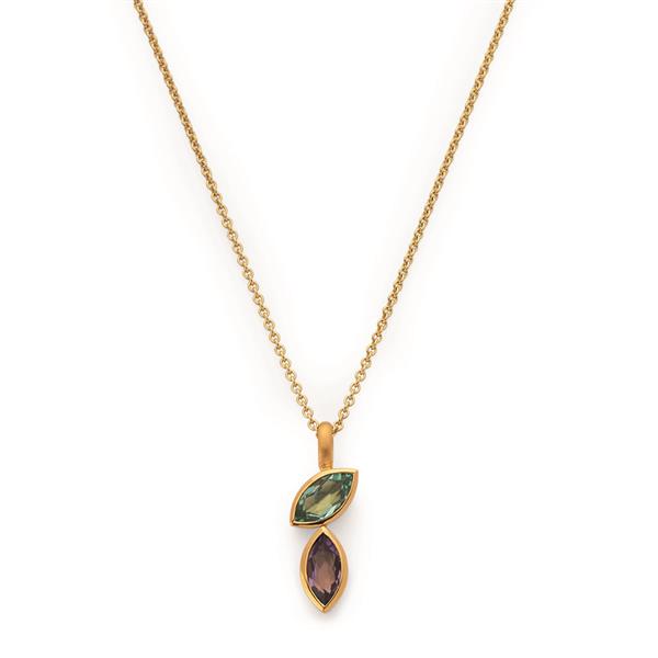 925/- Vedhæng, forgyldt, mat/pol, 2x ametyst 0,8ct, fra Bastian Inverun