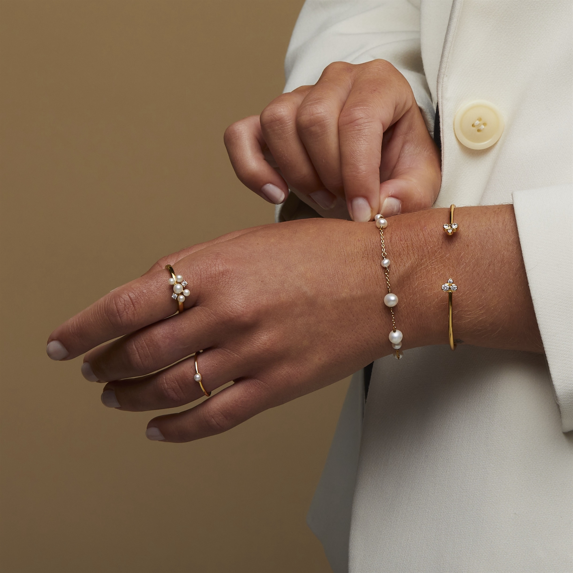 Eclipse-kollektionen er inspireret af fascinerende og fortryllende sol- og måneformørkelser og omfatter øreringe, halskæder og armbånd. Den er kendetegnet ved enten store zirkoniaer eller en blanding af perler og zirkoniaer.Materialer: 925 Sterling sølv belagt med 18 karat guld og facetteret zirkonia. Mål: 18 cm i omkreds inkl. åbning. Stil: MB0389