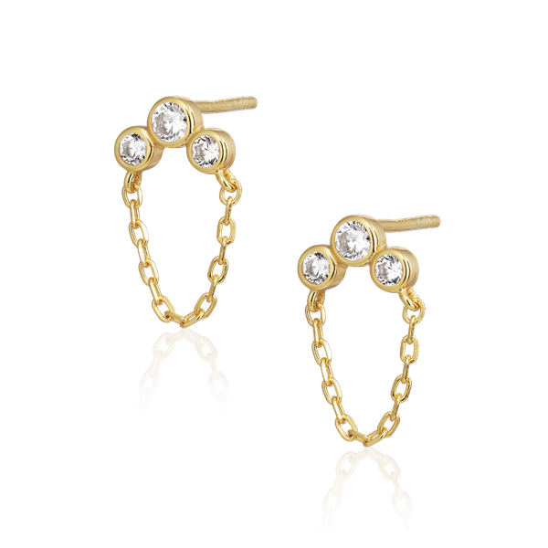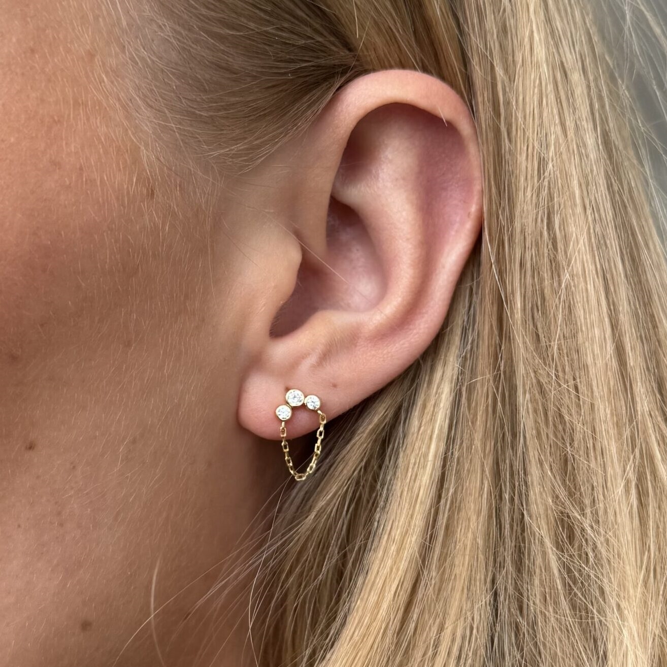 Elegant ørestik fra Alura Copenhagens Eclipse-kollektion, inspireret af sol- og måneformørkelser med et minimalistisk, tidløst design. Smykket er lavet af 925 sterlingsølv med 18 karat guldbelægning og prydet med en facetsleben zirkonia, som giver et subtilt, funklende udtryk. Ørestikken måler ca. 14,5 mm i højden og 7,4 mm i bredden med en zirkoniasten på ca. 2-2,4 mm, og sælges enkeltvis – perfekt som et diskret smykke til hverdag eller som del af en elegant ørestak.