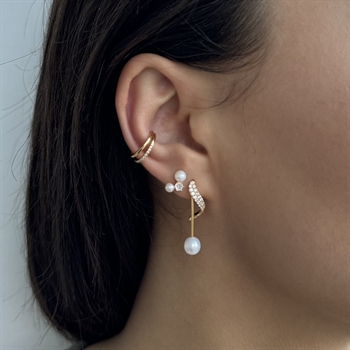 Elegant og iøjnefaldende ørestik fra Alura Copenhagens Eclipse-kollektion, inspireret af sol- og måneformørkelser med en smuk kombination af klassiske materialer og funklende detaljer. Smykket er lavet i 925 sterlingsølv med 18 karat guldbelægning, ferskvandsperle og facetslebne zirkoniaer, som skaber et raffineret, feminint look. Ørestikken måler ca. 23,3 mm i højden og 8,2 mm i bredden med en zirkoniasten på ca. 1,5 mm og en perle på ca. 5,9 mm, perfekt til både hverdag og fest.