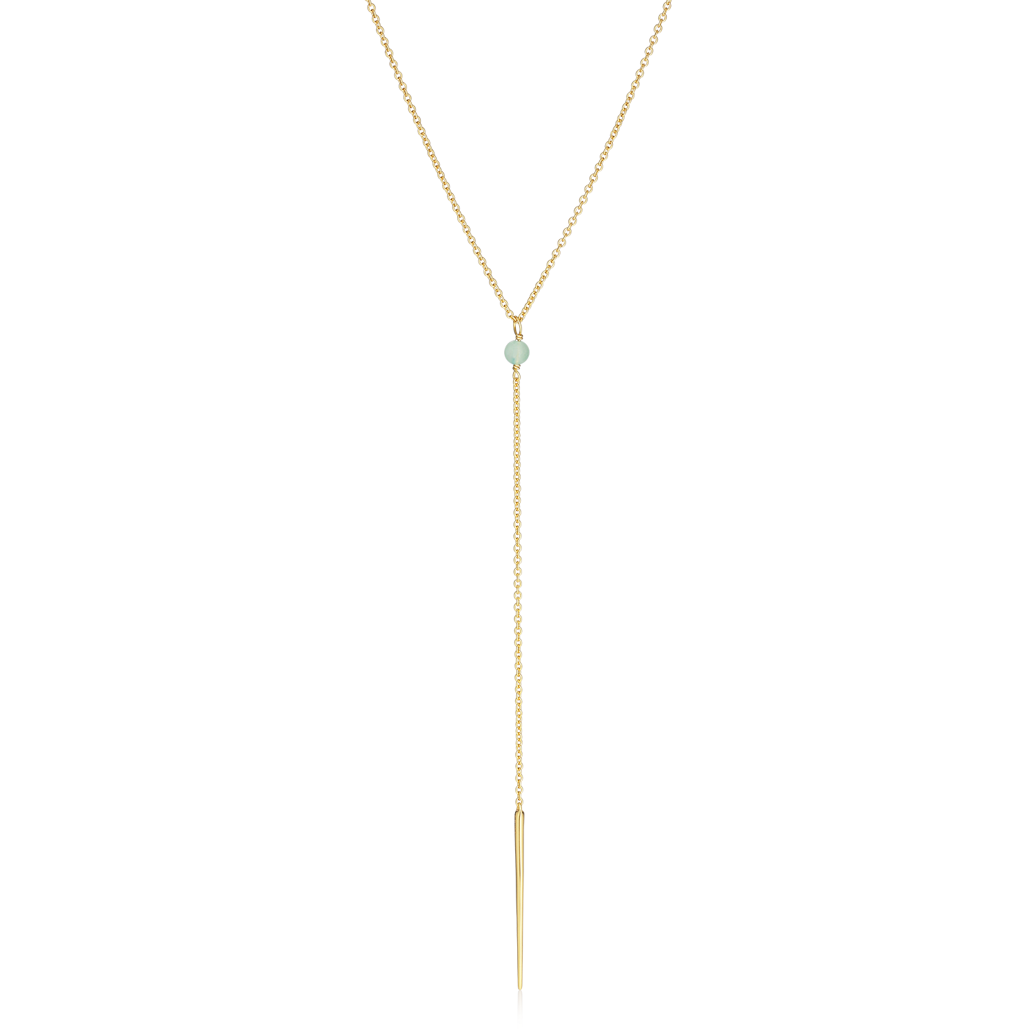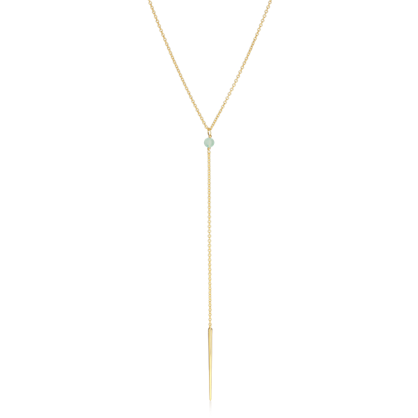 Elegant Y-halskæde fra Alura Copenhagens Ocean-kollektion, inspireret af havets uendelige skønhed og dets perler, der ligger som skjulte skatte på bunden, mens solen får vandet til at glimte som tusindvis af diamanter. Smykket er lavet af 925 sterlingsølv med 18 karat guldbelægning og fremhævet med ædelstenen aventurin for et sofistikeret, let glimtende look. Kæden har en længde på ca. 46 cm med en ekstra ca. 5 cm forlænger, så du kan tilpasse længden efter ønske – perfekt til både hverdag og fest.