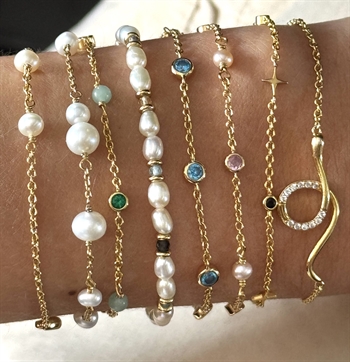 Elegant og moderne armbånd fra Alura Copenhagens Venus-kollektion, inspireret af planeten Venus – det næstklareste objekt på nattehimlen og et symbol på kærlighed og skønhed. Armbåndet er fremstillet i 925 sterlingsølv med 18 karat guldbelægning og kombinerer funklende facetslebne zirkoniaer med en kontrastfuld onyx-detalje, der giver et sofistikeret og tidløst udtryk. Det har en længde på ca. 16 cm med yderligere ca. 3 cm forlængelse, så du nemt kan tilpasse pasformen til dit håndled – perfekt til både hverdag og fest.