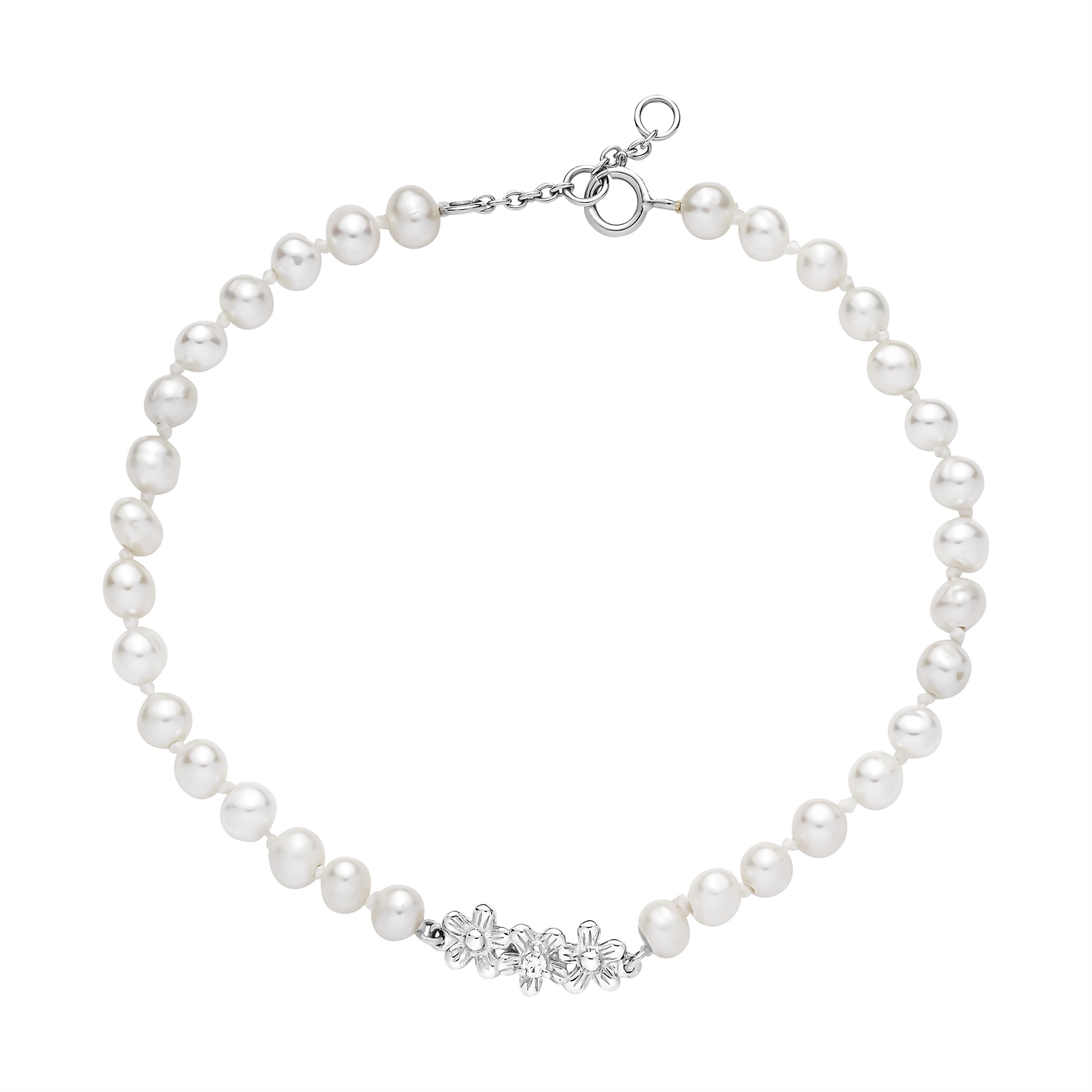 Armbånd med perler og blomsterkrans + zirkonia sterling sølv fra Lund Copenhagen