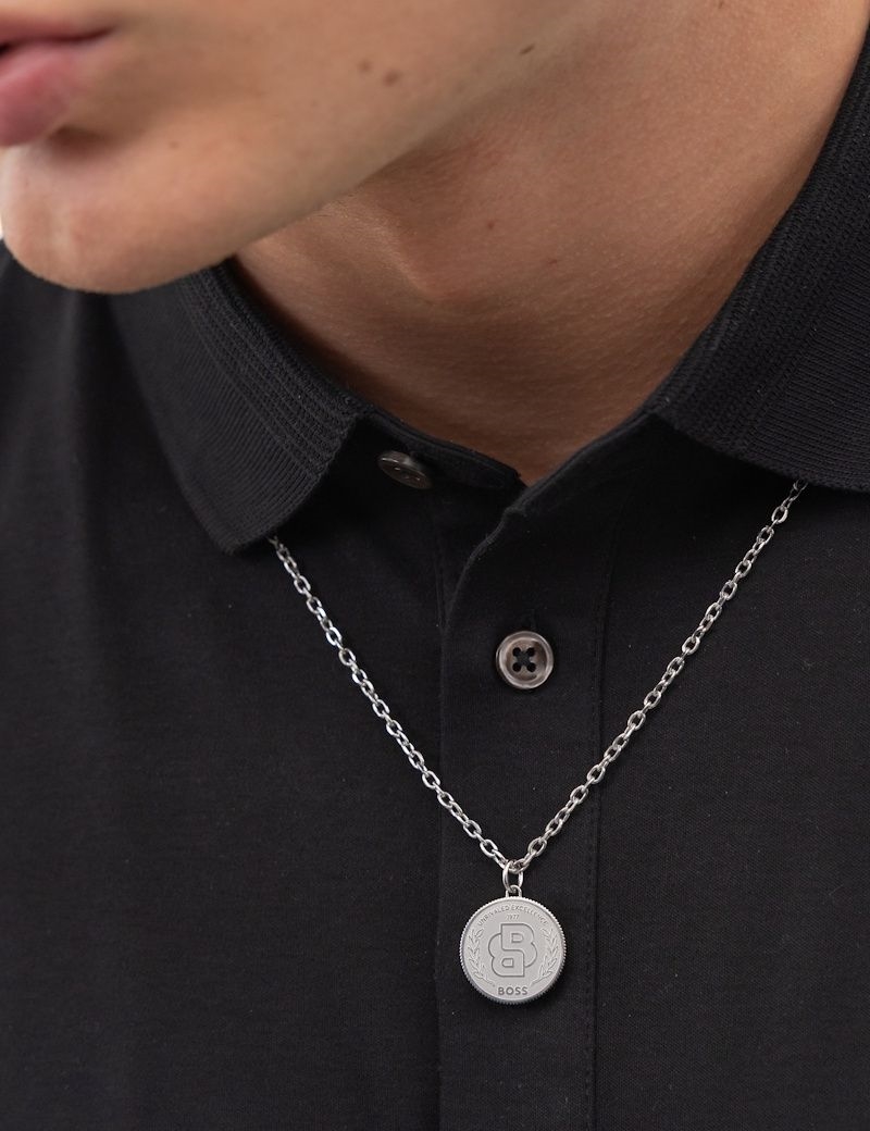 Bliv forelsket i hver detalje – vælg BOSS Double B Coin Halskæde.
