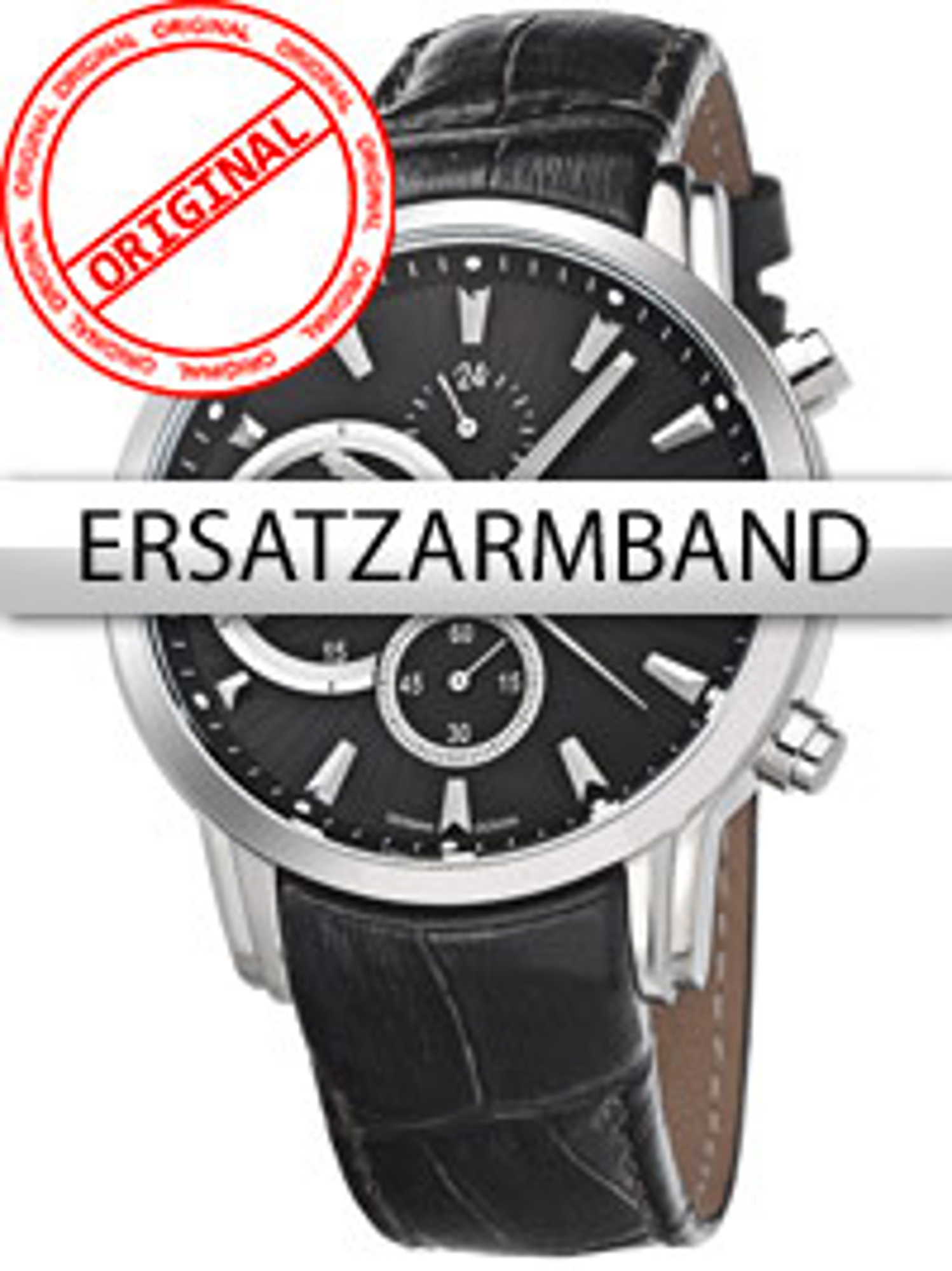 Bossart Replacement Strap Leather BW-1104 Black Silver Clasp Bracelet