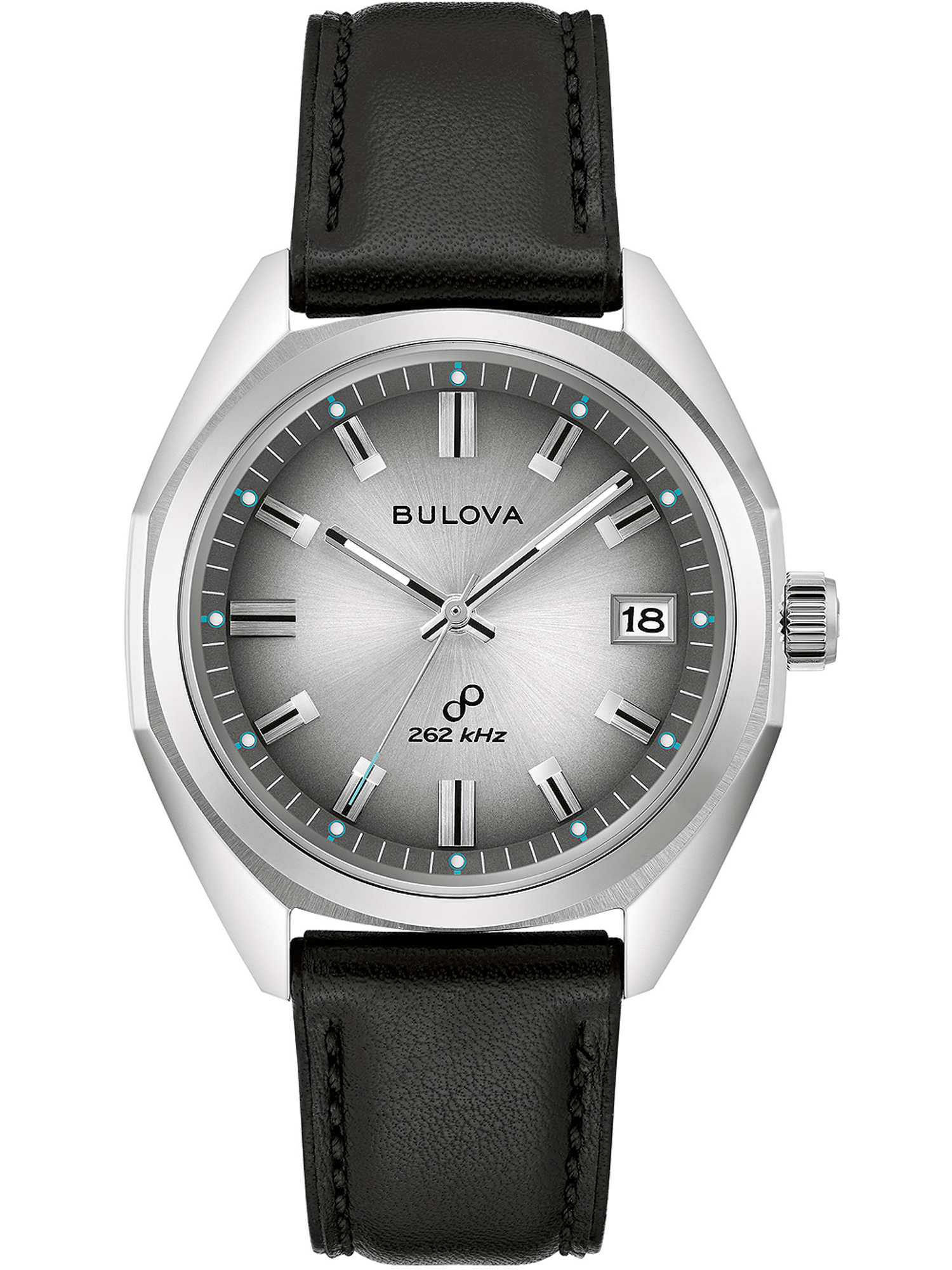 Dette Bulova herreur kombinerer præcis tidsmåling med praktisk funktionalitet. De blå prikker ved timemarkørerne sikrer nem aflæsning af tiden, mens den avancerede 262 kHz-teknologi leverer pålidelig præcision i hverdagen.