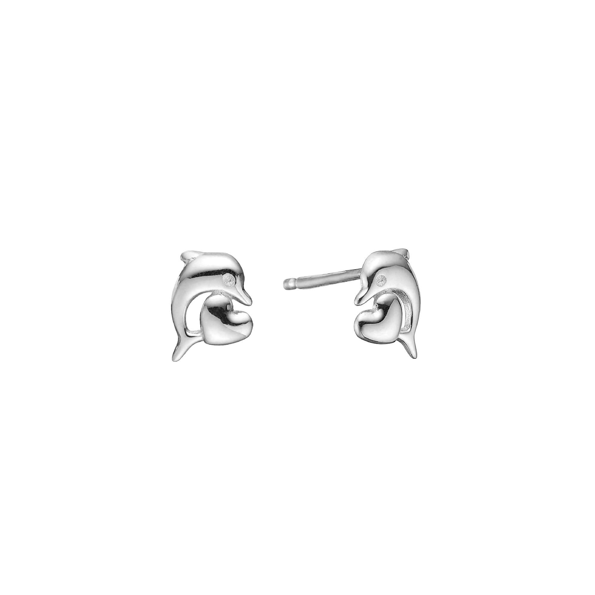 Delfin m hjerte ørestikker sølv, fra aagaard