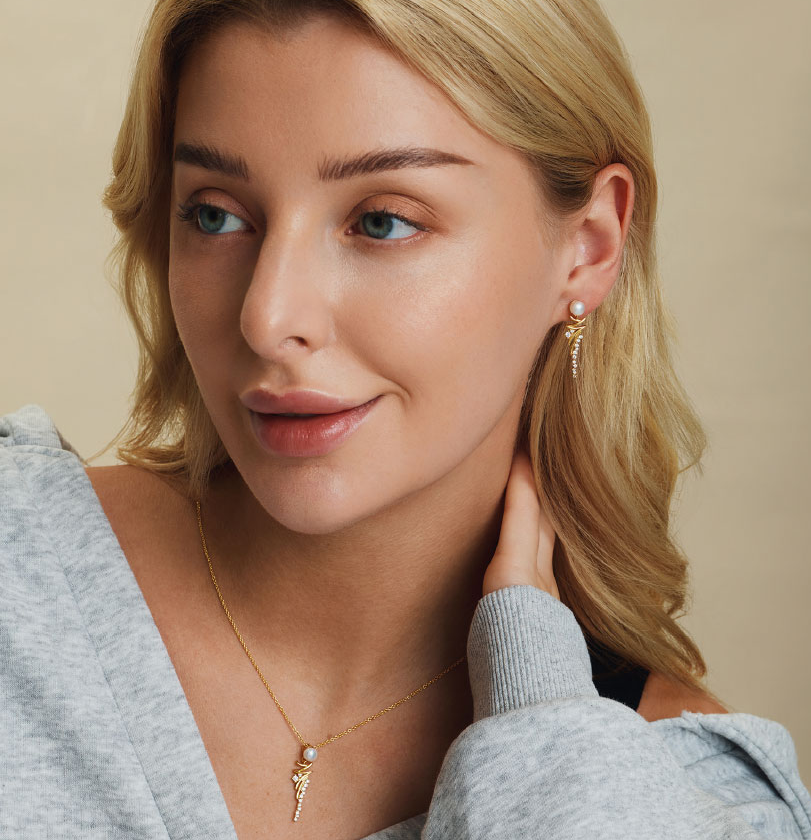 • Perle: Midt i designet sidder en ægte ferskvandsperle på 5 mm i diameter, der udsender en naturlig, delikat glans.