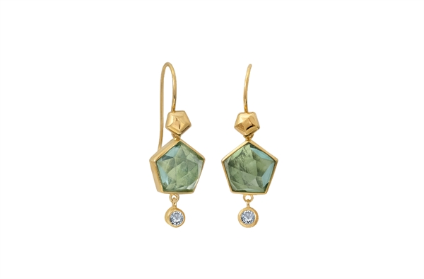 10mm pentagon aqua blå kvarts, 3mm sky blå topas