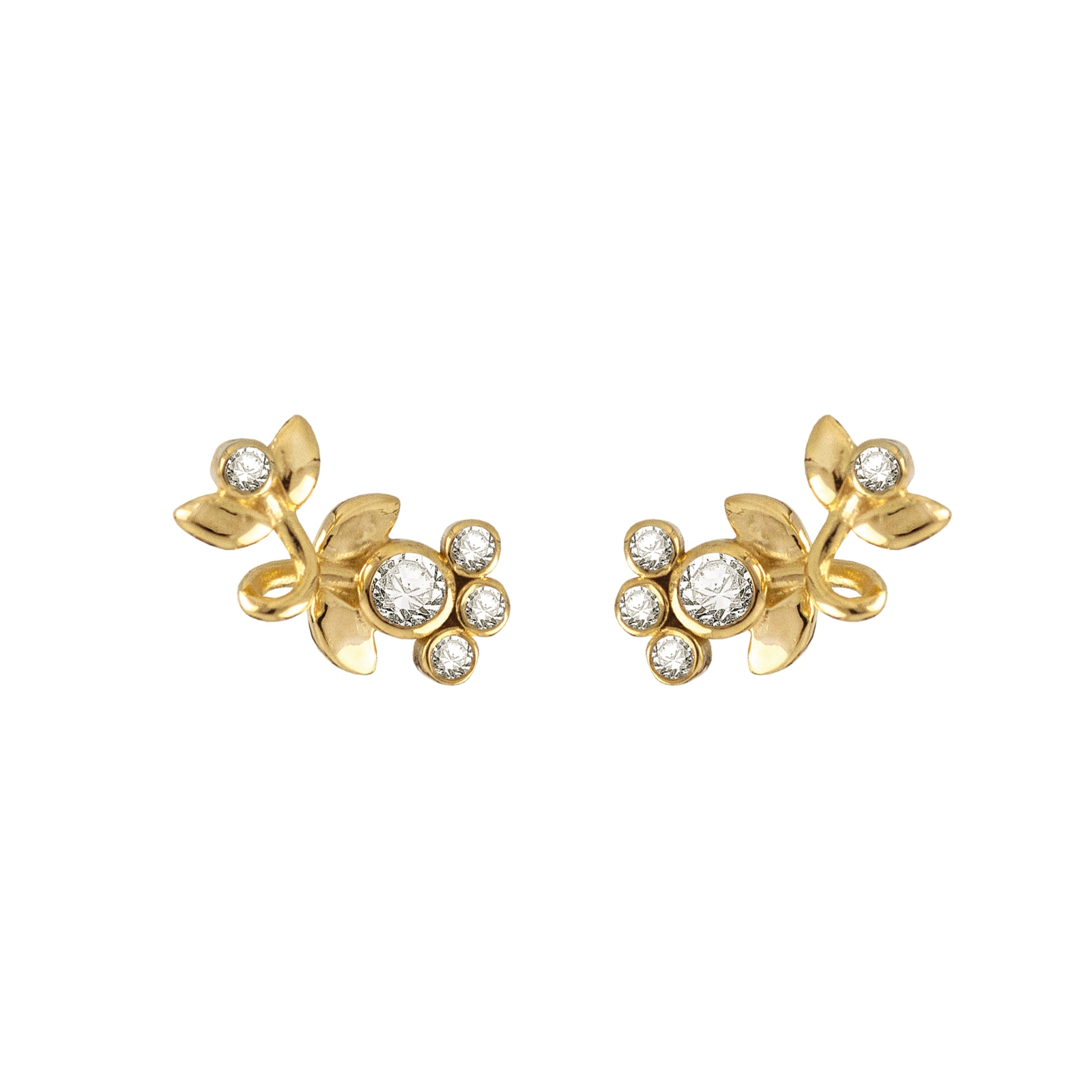 Rabinovich introducerer en ørestik, hvor det sofistikerede blomsterdesign med en central 2,5 mm zirkonia omgivet af fire mindre 1,3 mm zirkonia-sten skaber et elegant udtryk. De bladlignende detaljer i forgyldt sterlingsølv tilfører en organisk dimension, der gør smykket både unikt og tidløst.