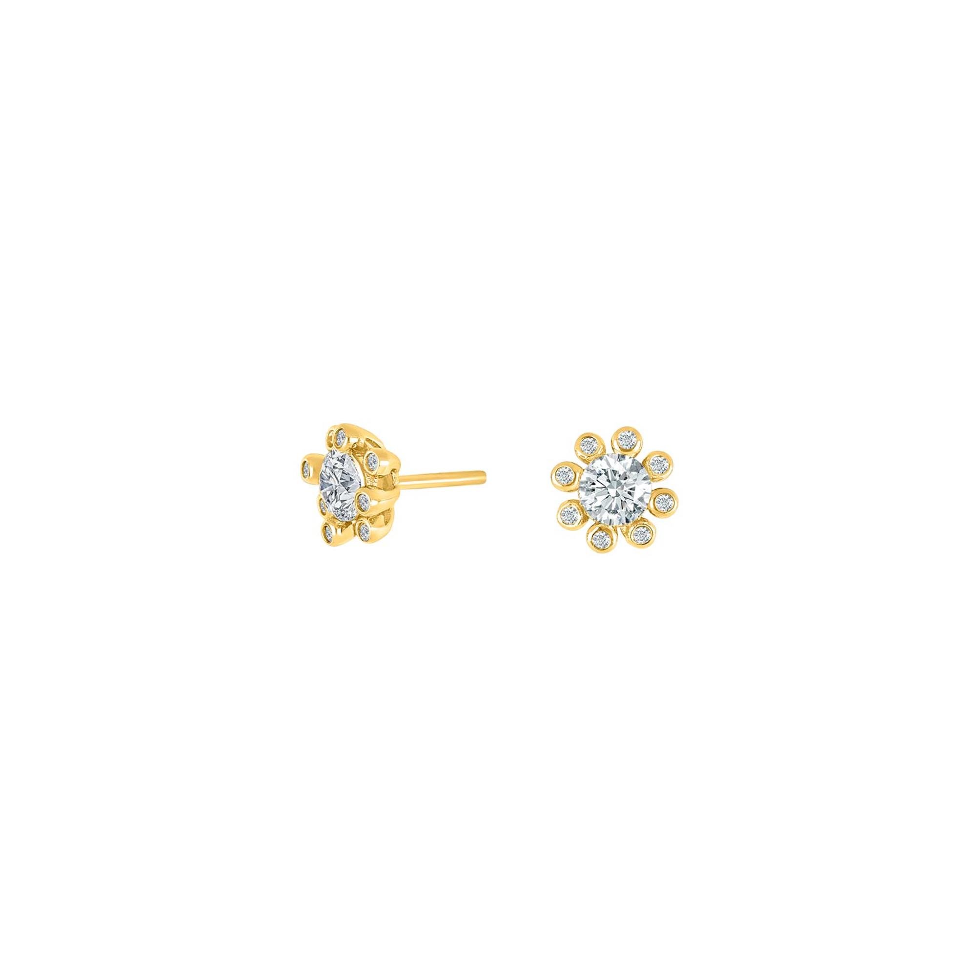 Elegante og tidløse øreringe, der har hentet sin inspiration fra naturen. Øreringene har en stor kubisk zirkonia i midten, og rundt om er der otte små, forskudte sten. Tilsammen danner de skinnende sten det fineste blomstermotiv.