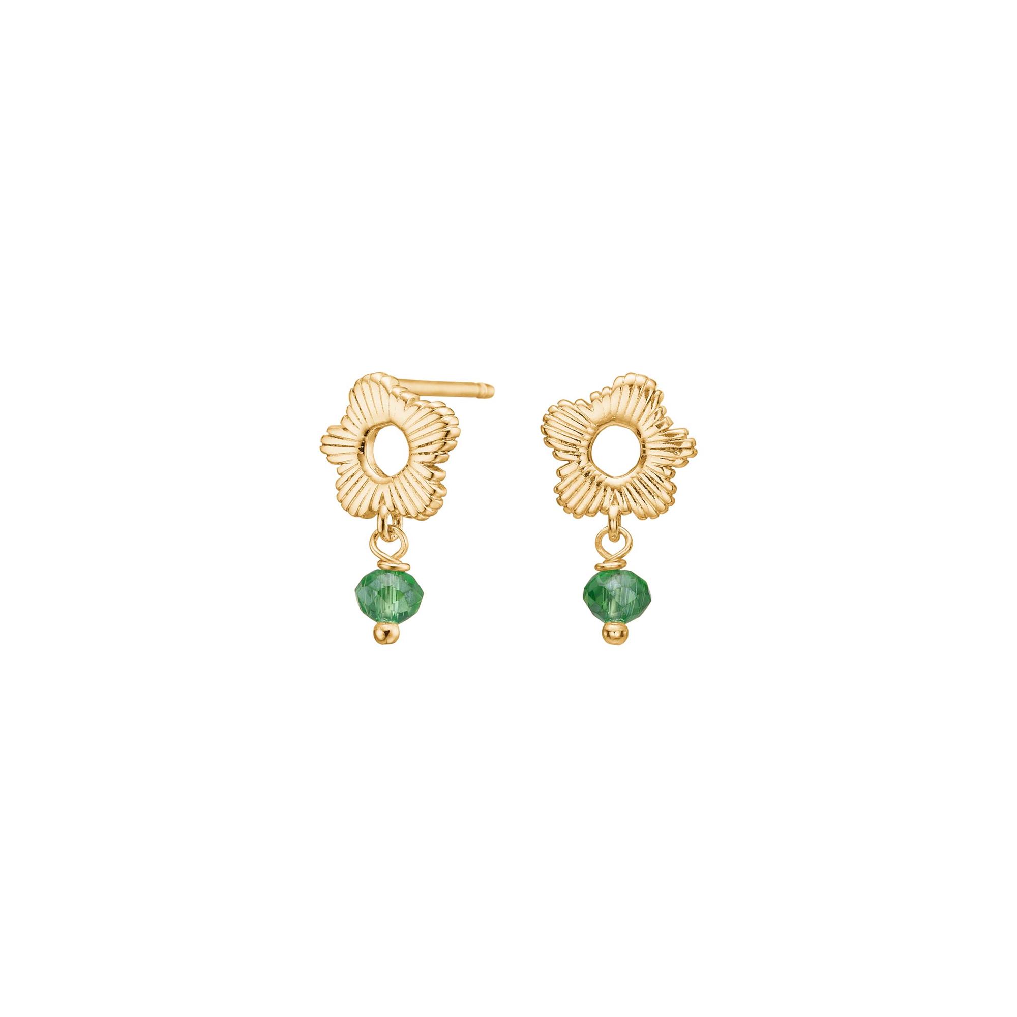 Forgyldt sølv ørestikker grøn blomst BRODERIE52, fra Nordahl