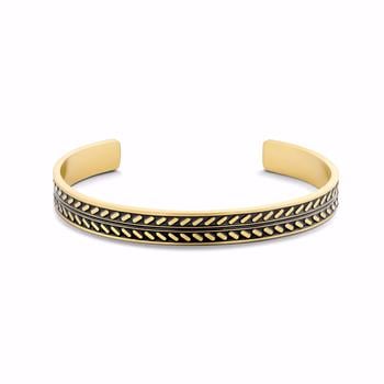 Dette armbånd tilføjer et sofistikeret touch til bryllupper og gallamiddage med sin luksuriøse guldfinish. Den åbne manchet-stil gør det nemt at tage af og på, ideelt til en aktiv hverdag. Den moderate bredde gør det let at kombinere med andre smykker uden at dominere.