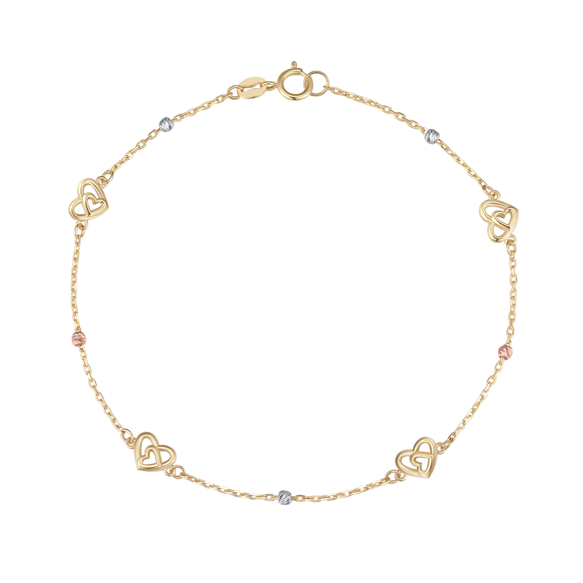 8 kt. guld armbånd dobbelt hjerte med kugle skiftvis.