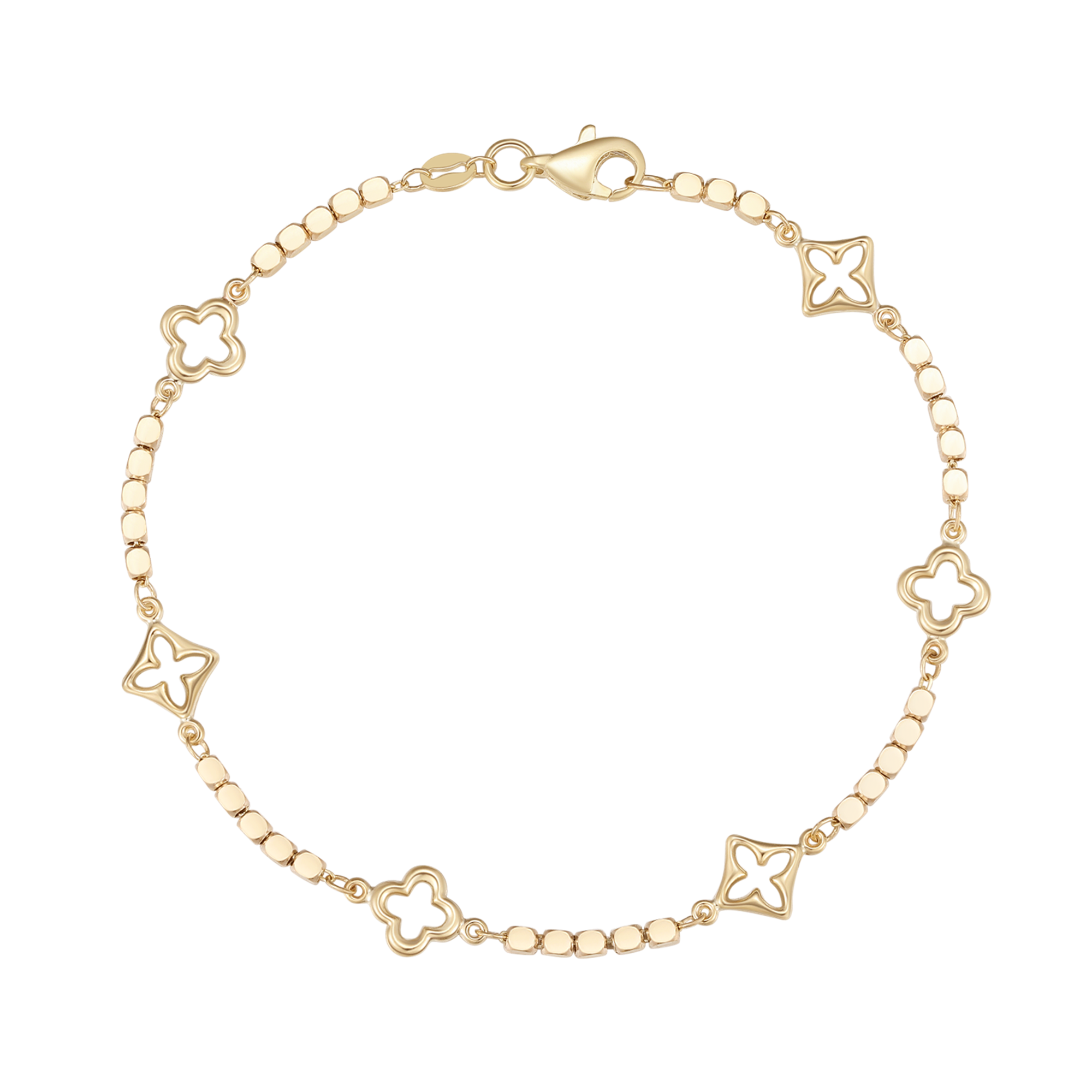 8 kt. guld armbånd rund kugle med blomst i firkant og alm. blomst.