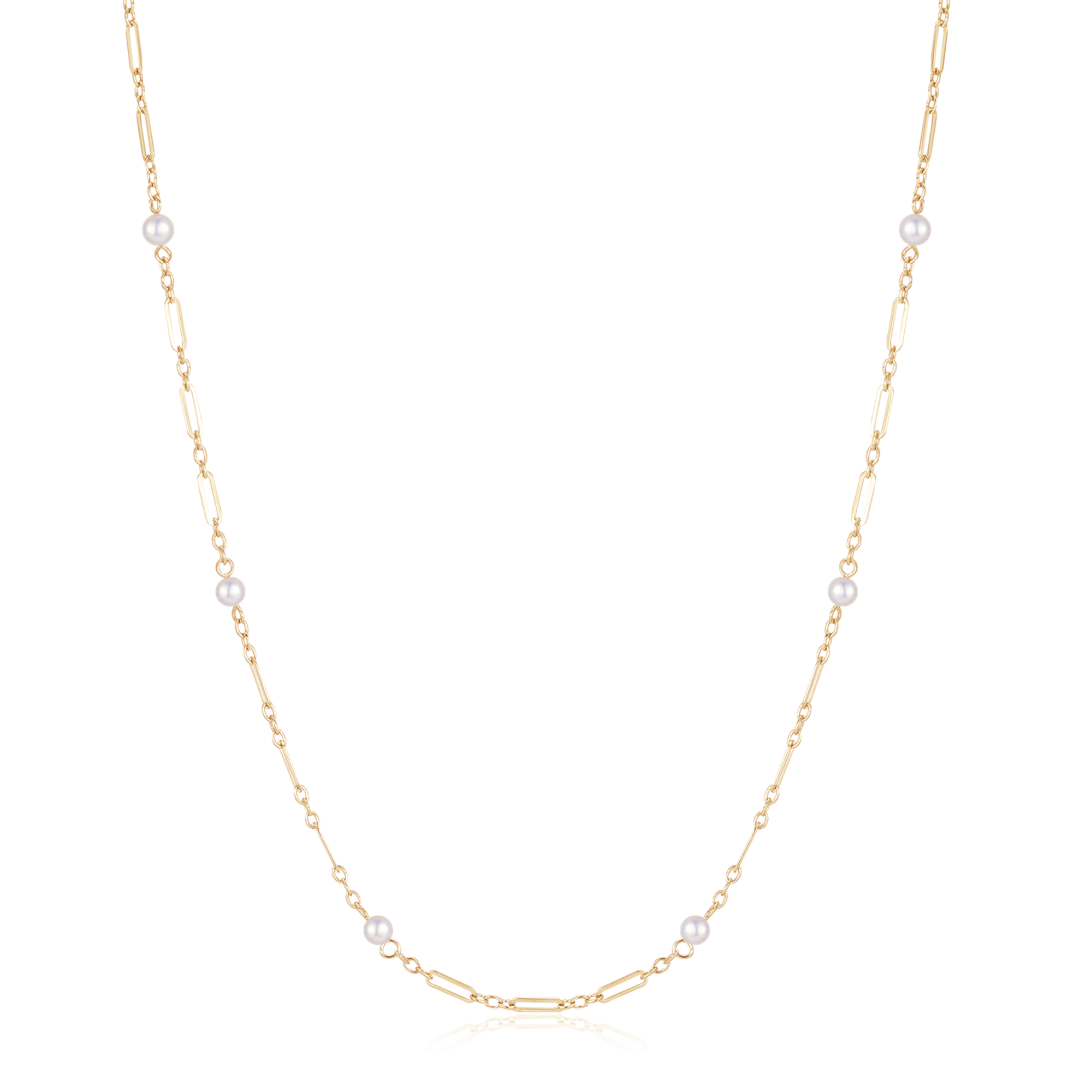 14 kt. guld collier kæde med ferskvandsperler i mellem.