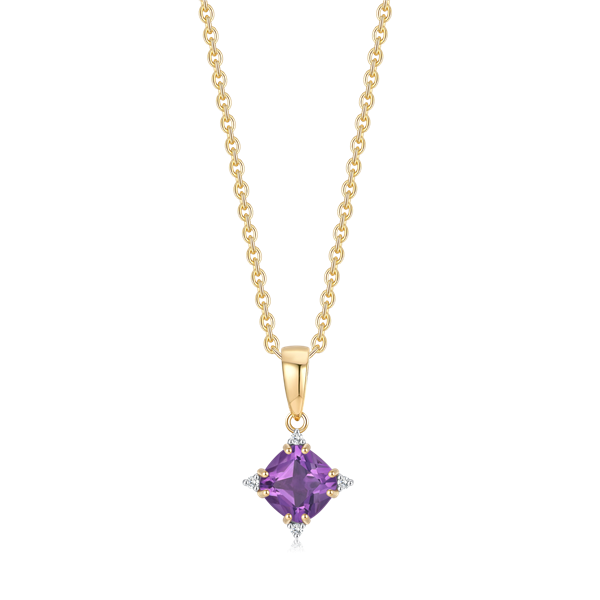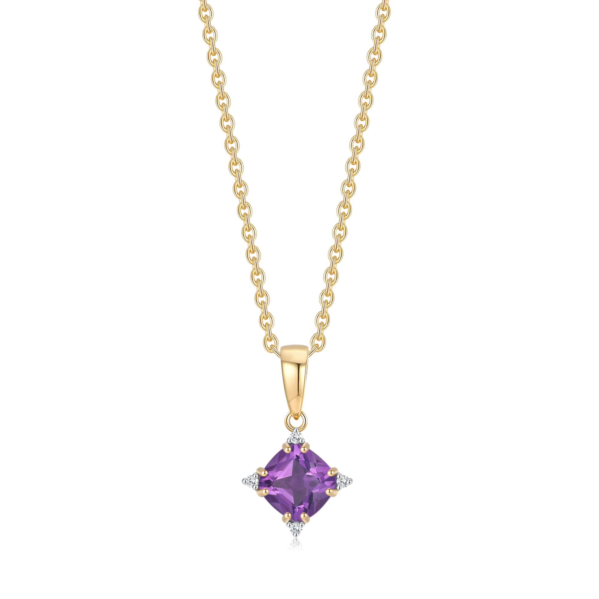 8 kt. guld vedhæng firkant ametyst i 4 grabber med syntetiske cubic zirconia i hver hjørne.