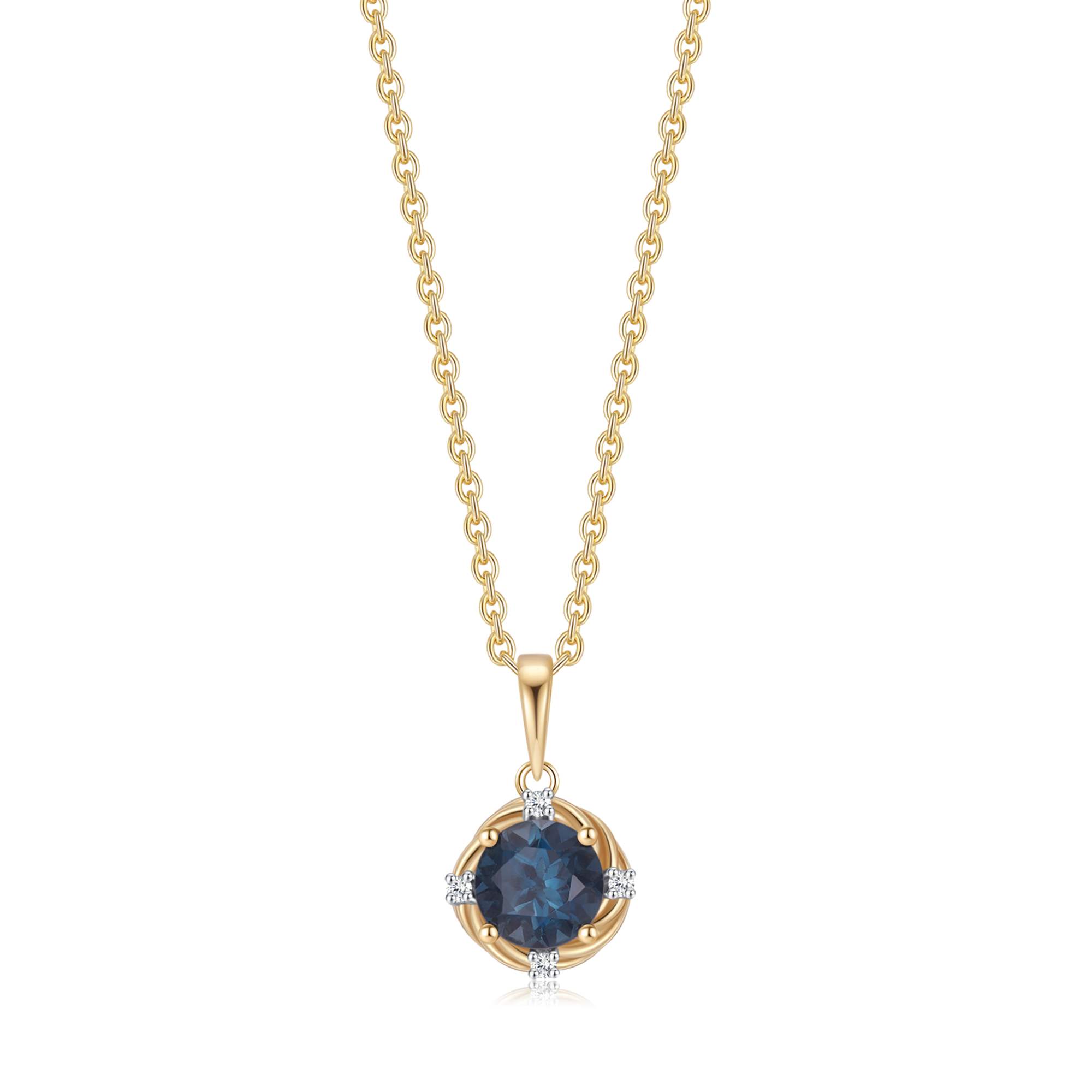 14 kt. guld vedhæng cirkel london blå topas med syntetiske cubic zirconia.