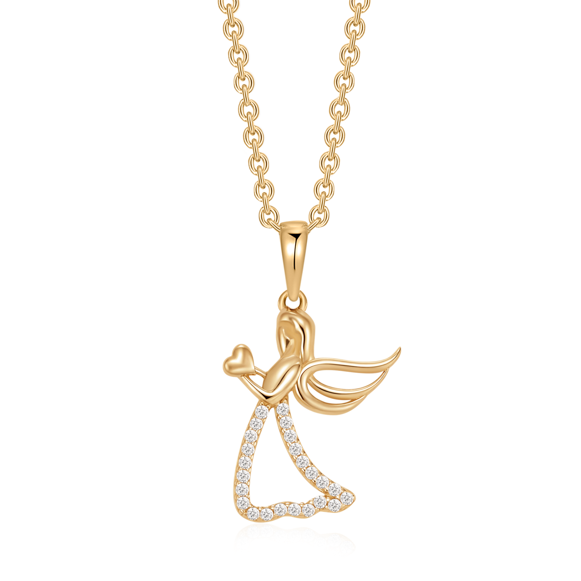 8 kt. guld vedhæng engel med hjerte og syntetiske cubic zirconia.