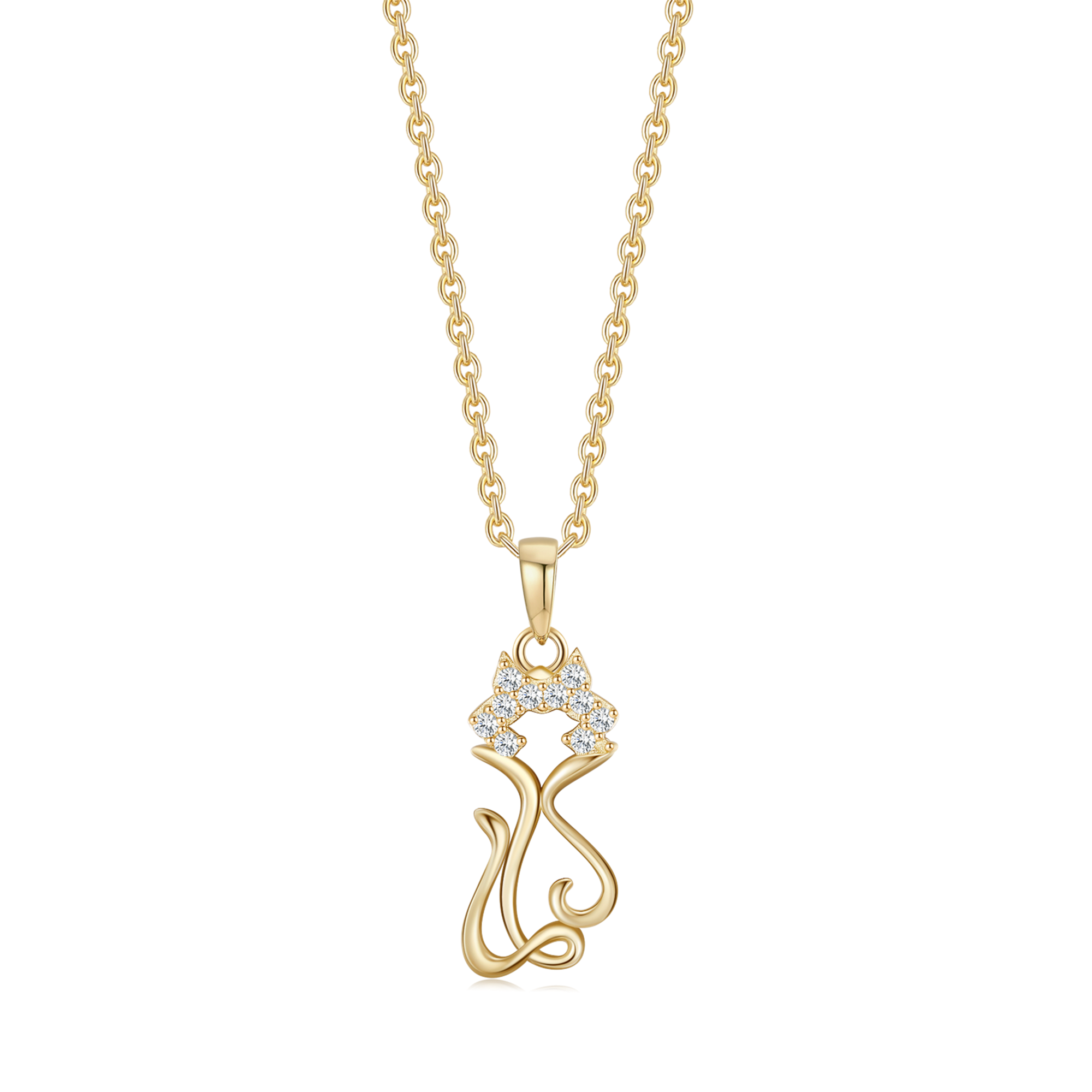 8 kt. guld vedhæng kat med syntetiske cubic zirconia og hjerte forme som kroppen.