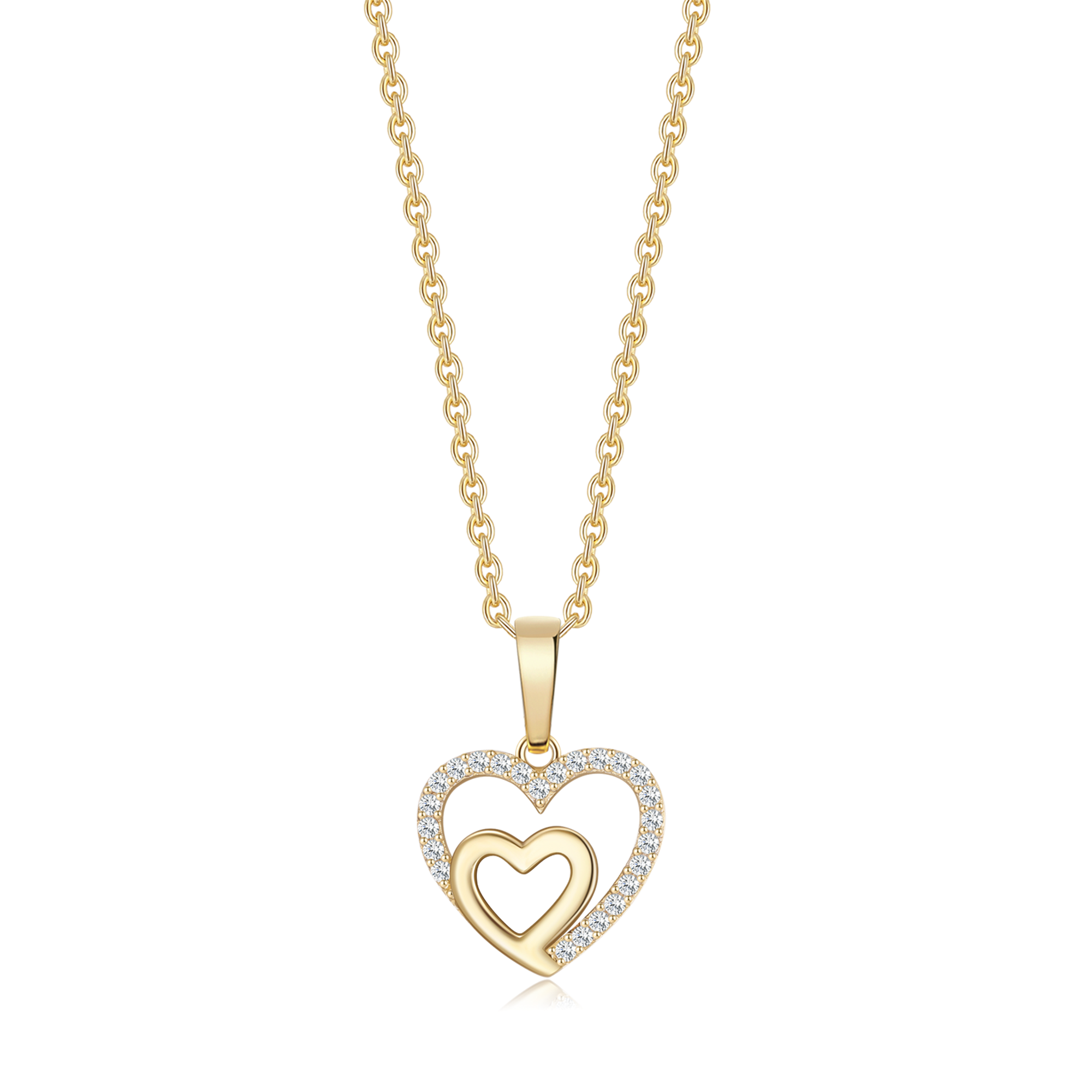 8 kt. guld vedhæng dobbelt hjerte med syntetiske cubic zirconia.