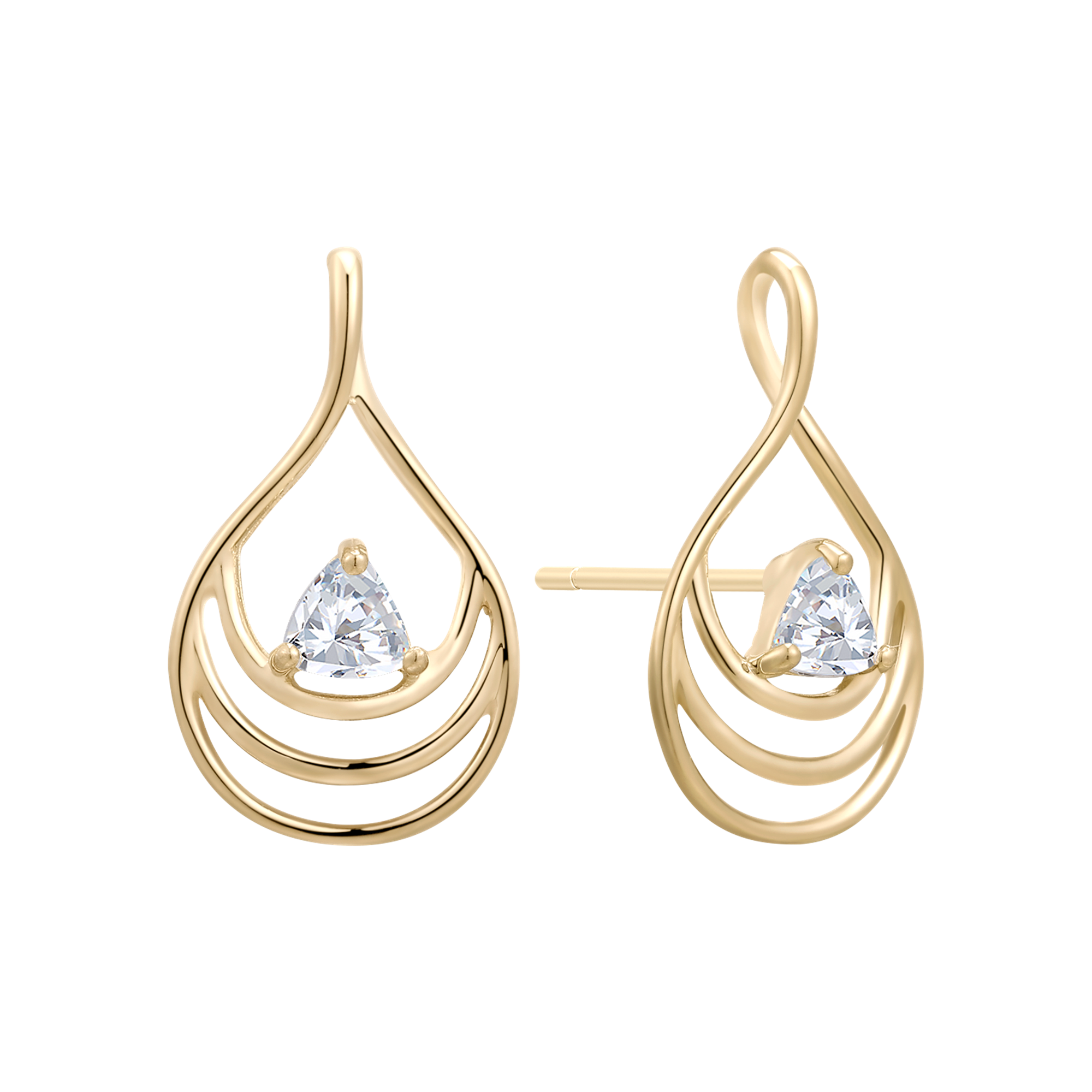 8 kt. guld ørestikker dråbe med 3 streger og en syntetisk cubic zirconia.