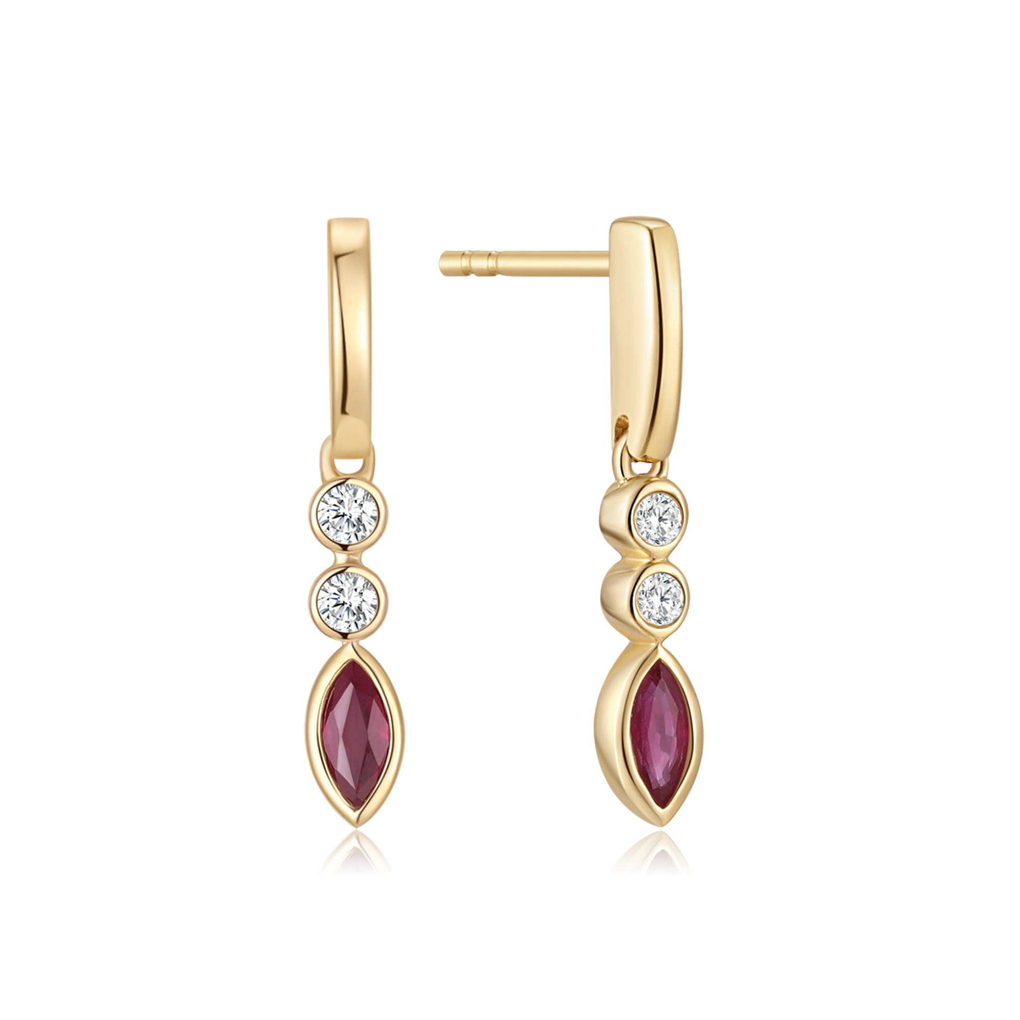 14 kt. guld ørestikker 0,07 ct. w/pk aflang pind med 2 brillanter og rubin
