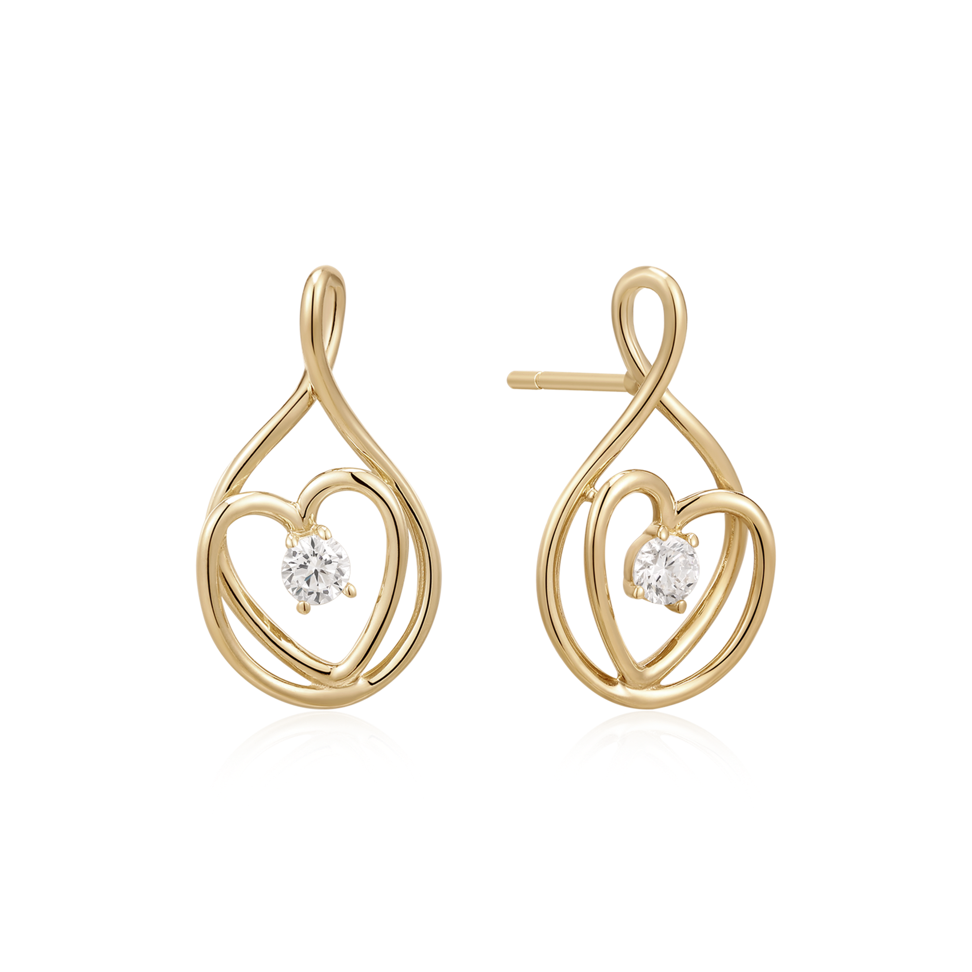 14 kt. guld ørestikker dråbe med hjerte og en syntetisk cubic zirconia.