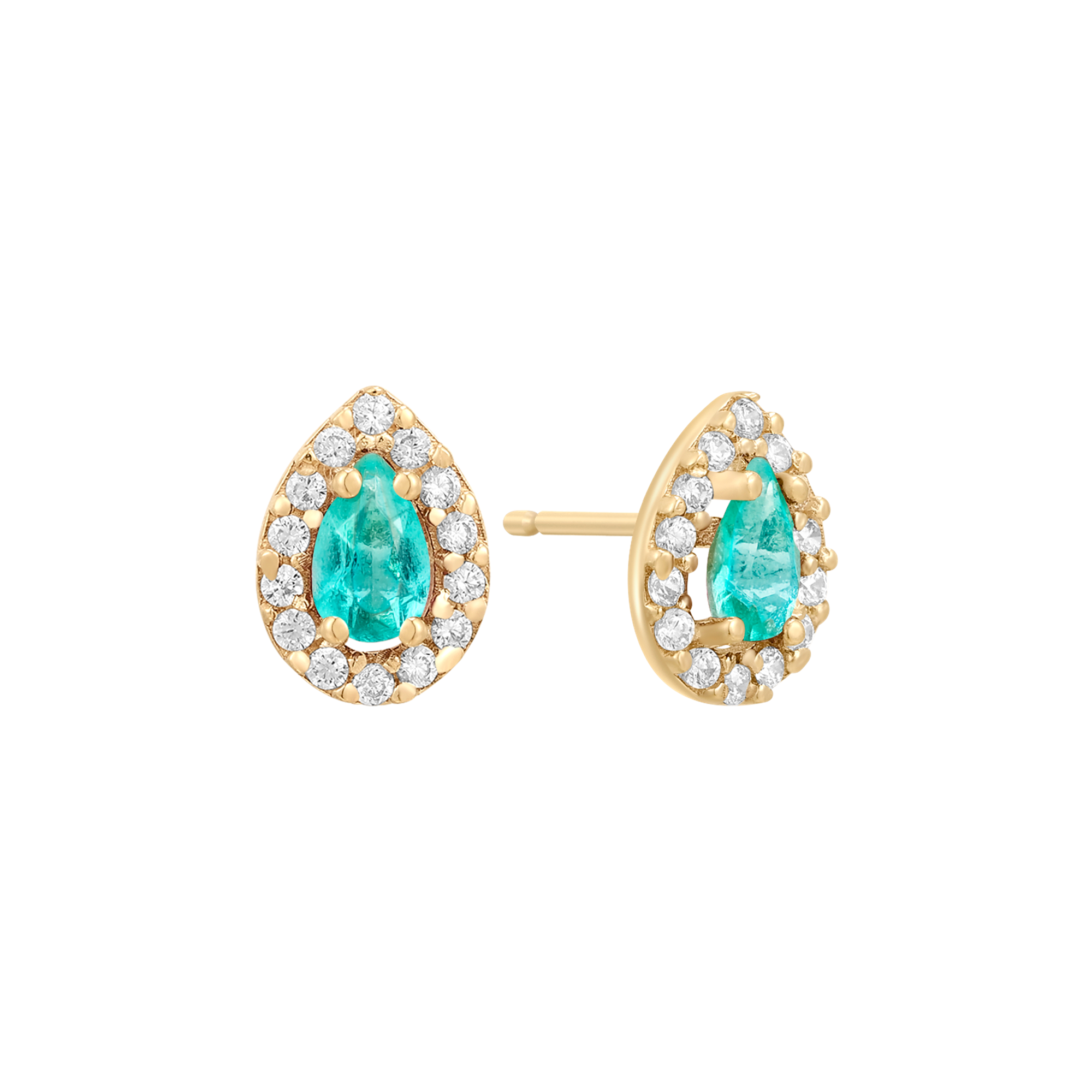 8 kt. guld ørestikker oval lyseblå topas med syntetiske cubic zirconia.